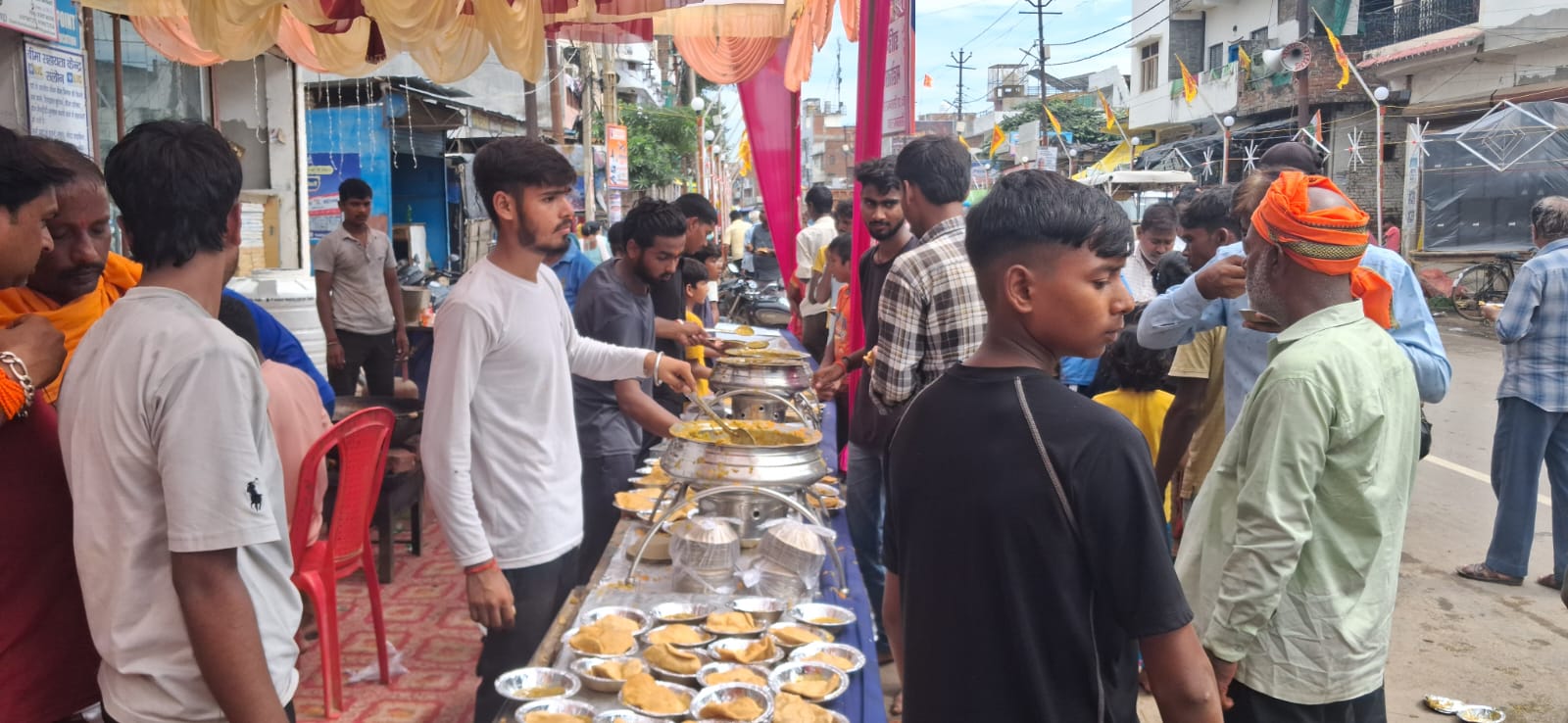 सलोन (रायबरेली)। शारदीय नवरात्रि के छठे दिन कस्बे में भंडारे का आयोजन बड़ी धूमधाम से किया गया। सुबह से ही भंडारे में प्रसाद लेने के लिए श्रद्धालुओं की भीड़ उमड़ पड़ी। दिनभर भक्तों ने श्रद्धापूर्वक हलवा-पूड़ी और सब्जी-पूड़ी का प्रसाद ग्रहण किया।कस्बे के सब्जी मंडी स्थित माँ मनकामेश्वरी देवी मंदिर परिसर व मीनाक्षी मंदिर पंडाल के समीप भंडारे में कार्यकर्ताओं ने न केवल श्रद्धालुओं बल्कि राहगीरों को भी रोककर स्नेहपूर्वक प्रसाद वितरित किया।गत वर्ष की भांति इस वर्ष भी देवी भक्तों ने बढ़-चढ़कर प्रसाद वितरण में सहभागिता निभाई।दोपहर से लेकर देर शाम तक मंदिर परिसर व पंडाल श्रद्धालुओं से खचाखच भरा रहा। हर कोई भक्ति भाव से प्रसाद ग्रहण कर स्वयं को धन्य महसूस कर रहा था।इस कार्यक्रम में नौ युवक अम्बे दल व रामलीला दुर्गा पूजा कमेटी के कार्यकर्ताओं सहित अनेक देवी भक्तों ने भी सक्रिय सहयोग किया। इनमें प्रमुख रूप से राकेश शर्मा, फूल चंद गुप्ता, सर्वेश मौर्य, संदीप कुमार गुप्ता, शैलेश जोशी, अनिरुद्ध जोशी, शिवा जोशी, मनदीप गुप्ता, राजू भुजवा, धर्मेंद्र जोशी, संदीप जोशी व दुर्गा पूजा कमेटी के बिपिन कौशल, मुरारी लाल साहू, सुभाष जायसवाल, सन्देश अग्रहरि सहित अन्य भक्तों ने योगदान दिया।भक्तिमय माहौल में सम्पन्न हुए इस आयोजन ने नवरात्रि उत्सव की छटा को और अधिक उल्लासमय बना दिया।वही माँ दुर्गा पूजा पण्डाल के सामने गुम नाम विशाल भंडारा किया गया । जिसमे हजारों भक्तों ने प्रसाद ग्रहण किया।