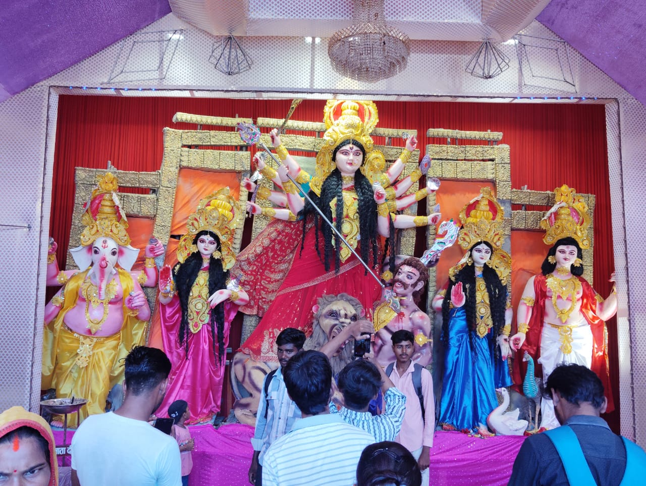 सलोन (रायबरेली):शारदीय नवरात्र पर कस्बे के मुख्य मार्ग पर सजा मां जगत जननी का विशाल पंडाल भक्तों के लिए आस्था और आकर्षण का केंद्र बना हुआ है।यहां प्रतिदिन हजारों की संख्या में श्रद्धालु मां की आरती में पहुंचकर मां के दरबार में माथा टेक रहे हैं।कलकत्ता से आए कलाकारों द्वारा तैयार की गई मां दुर्गा की प्रतिमा अपनी मनमोहक छटा से भक्तों को दिव्य दर्शन कराती है।मां के नौ हाथों में शस्त्र और त्रिशूल के साथ महिषासुर वध की झांकी असत्य पर सत्य की विजय का संदेश देती है।